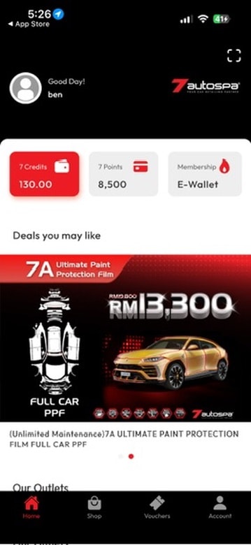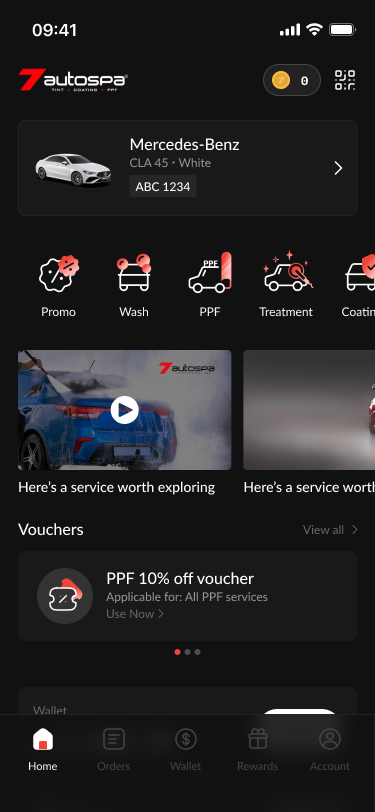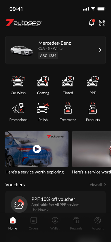Before the redesign, the 7Autospa digital experience suffered from a lack of strategic focus. The interface functioned merely as a basic utility, a digital list of services that failed to capture the premium nature of the brand. Key features were buried, and the user journey felt stagnant, offering little incentive for users to explore beyond a single transaction. The absence of a cohesive design system meant that the app lacked the "personality" and high-end feel that 7Autospa customers expect from their physical service centers.