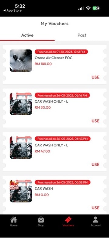 When I need to maintain the family cars, I want to see my membership benefits and active vouchers at a glance so I can keep our vehicles clean while staying within my monthly household budget.