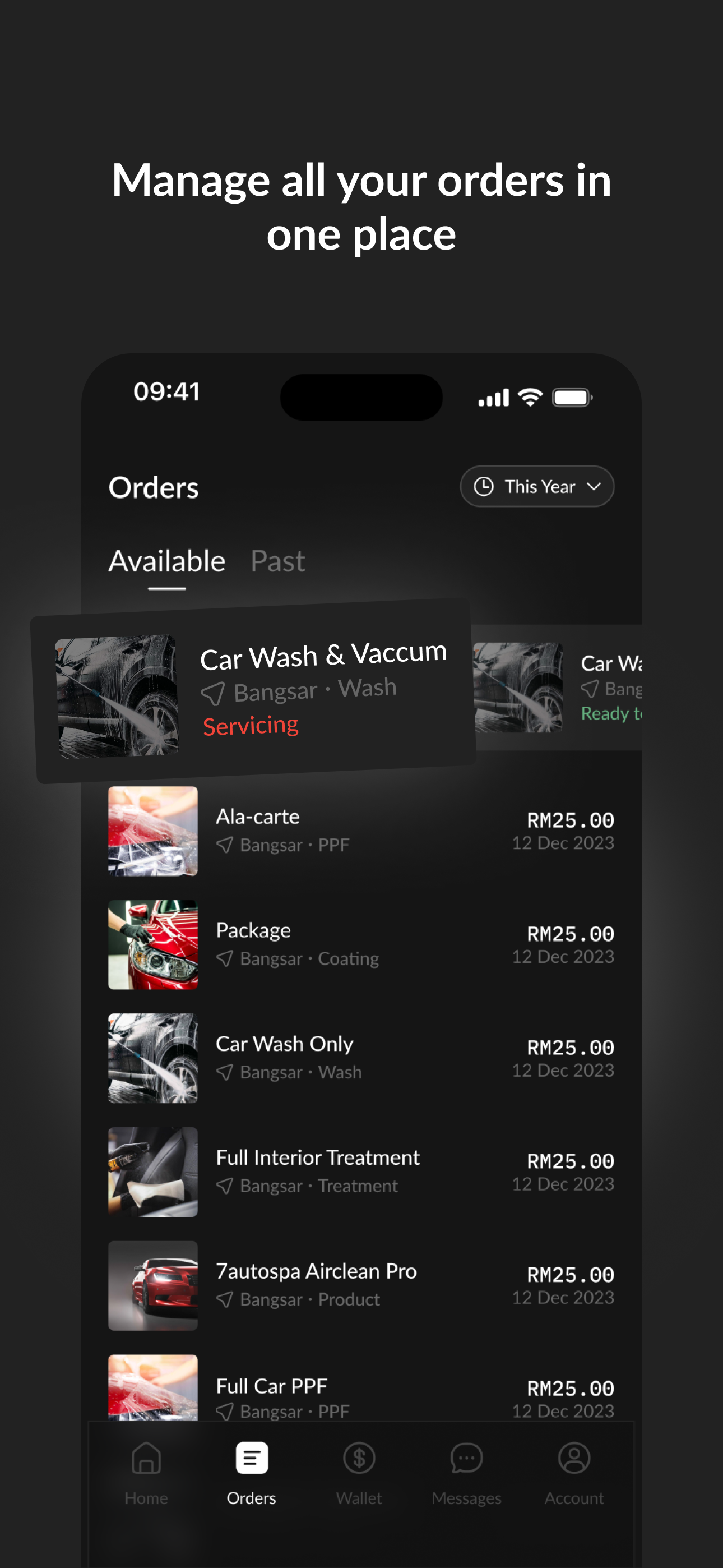 When I invest in a new vehicle, I want to track its maintenance history and easily access premium detailing services so I can maintain the car's resale value and aesthetic.